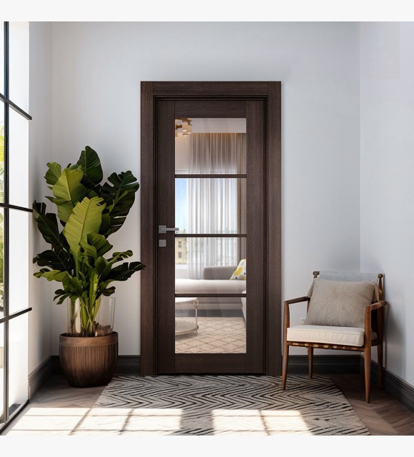 Modern design: eco-friendly materials, straight lines, and glass insert are the hallmarks of the door in a classic style with hi-tech highlights. The minimalistic design of the slab will fit harmoniously into every room. Thanks to the noble shade, Avon 4 Lite will refresh your interior and become an accent piece of your home or apartment.
