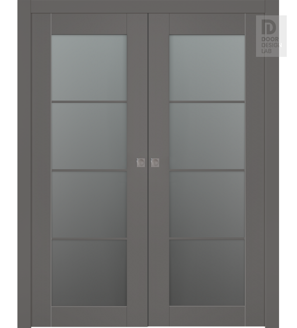 Avon 4 Lite Vetro Gray Matte Modern Interior Double Pocket Doors by Belldinni