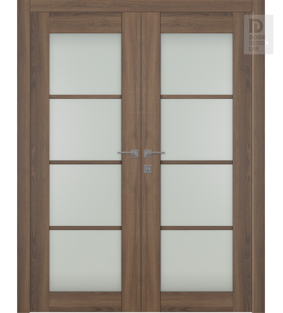 Avon 4 Lite Vetro Pecan Nutwood Modern Interior Double Swing Doors by Belldinni