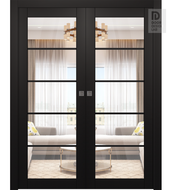 Avon 5 Lite Clear Vetro Black Matte Modern Interior Double Pocket Doors by Belldinni