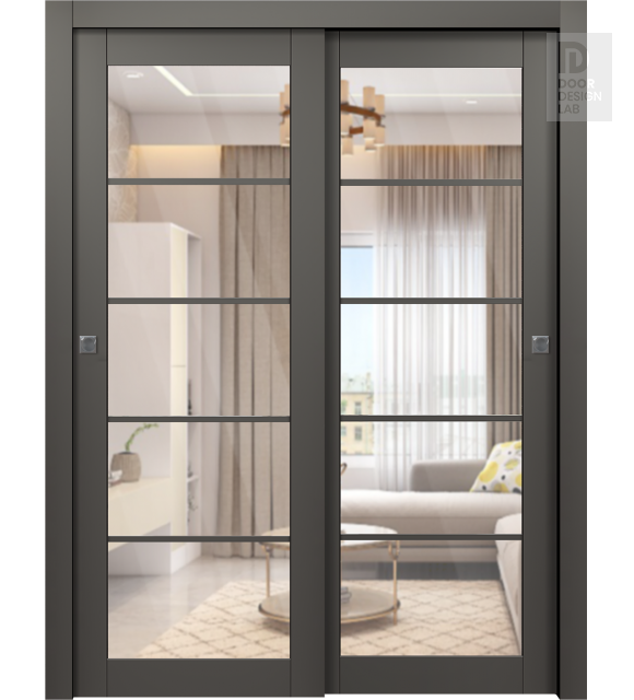 Avon 5 Lite Clear Vetro Gray Matte Modern Interior Bypass Doors by Belldinni