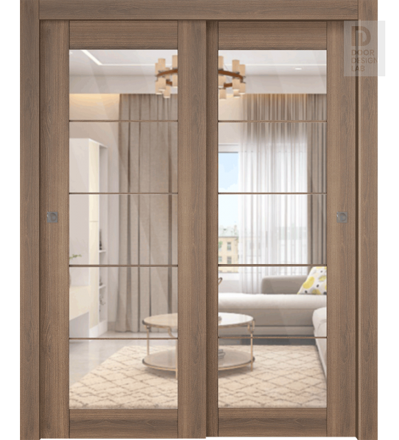 Avon 5 Lite Clear Vetro Pecan Nutwood Modern Interior Bypass Doors by Belldinni