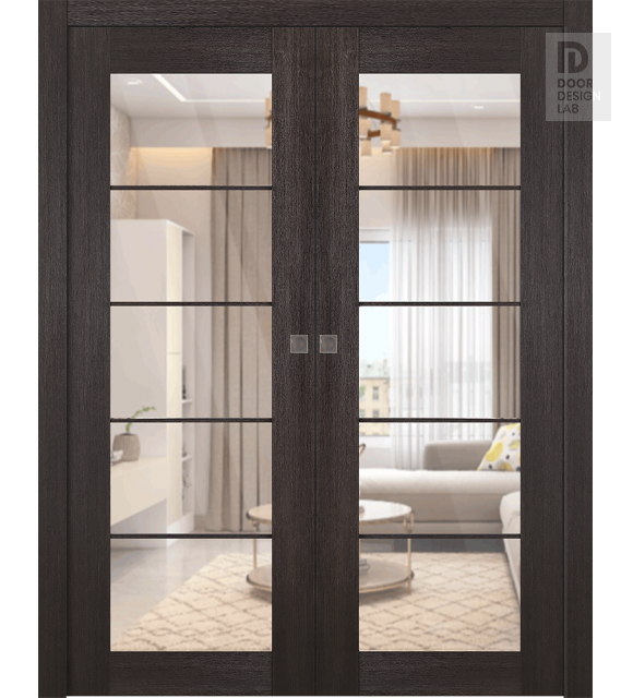 Avon 5 Lite Clear Vetro Veralinga Oak Modern Interior Double Pocket Doors by Belldinni