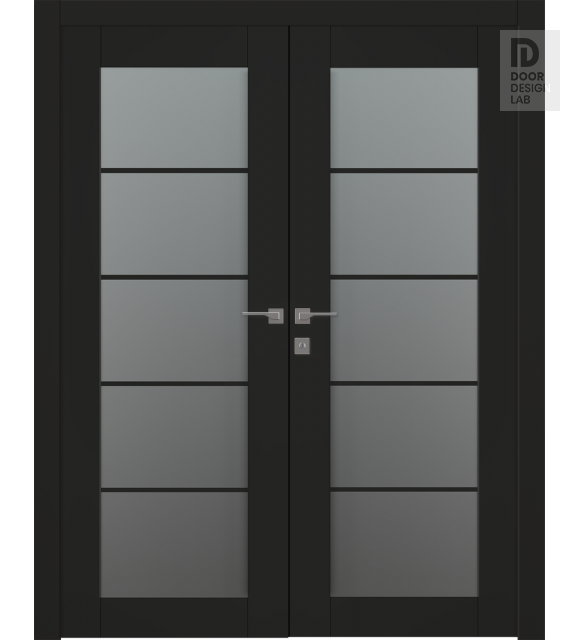Avon 5 Lite Vetro Black Matte Modern Interior Double Swing Doors by Belldinni
