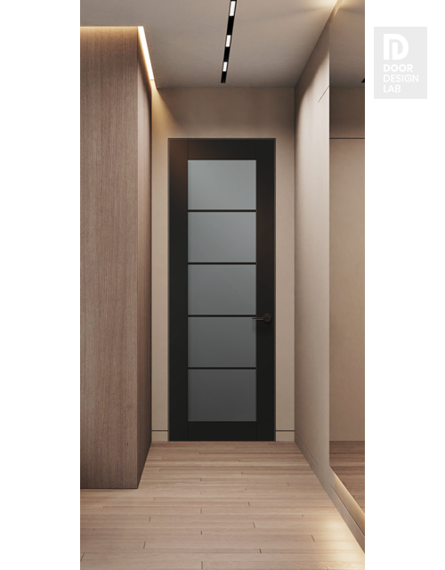 Avon 5 Lite Vetro Black Matte Modern Interior Frameless Door by Belldinni