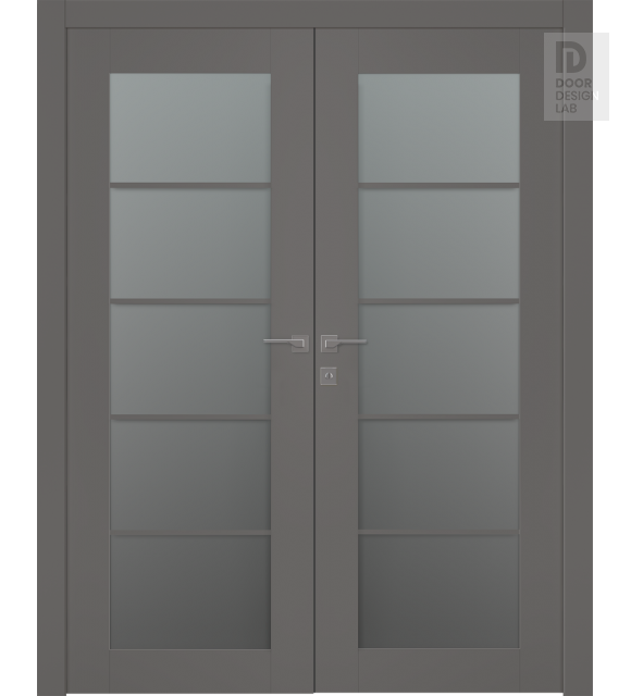 Avon 5 Lite Vetro Gray Matte Modern Interior Double Swing Doors by Belldinni