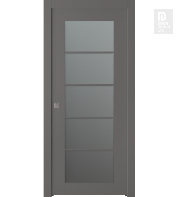 Avon 5 Lite Vetro Gray Matte Modern Interior Pocket Door by Belldinni