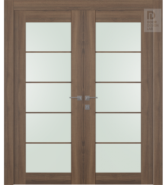 Avon 5 Lite Vetro Pecan Nutwood Modern Interior Double Swing Doors by Belldinni