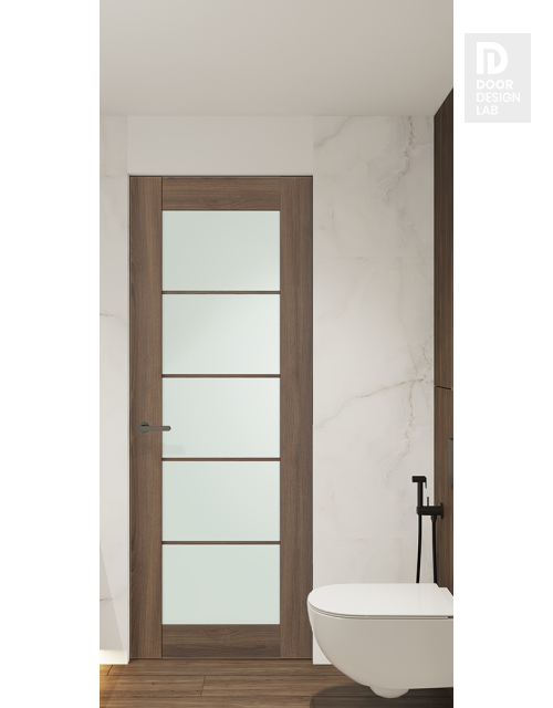 Avon 5 Lite Vetro Pecan Nutwood Modern Interior Frameless Door by Belldinni