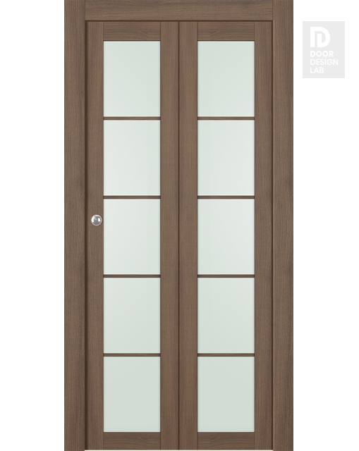 Avon 5 Lite Vetro Pecan Nutwood Modern Interior Bifold Doors by Belldinni