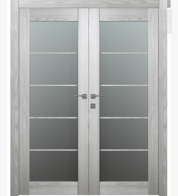 Avon 5 Lite Vetro Ribeira Ash Modern Interior Double Swing Doors by Belldinni