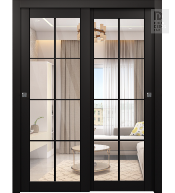 Avon 8 Lite Clear Vetro Black Matte Modern Interior Bypass Doors by Belldinni