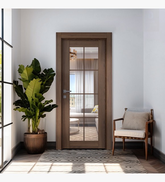 Avon 8 Lite Clear Vetro Pecan Nutwood Modern Interior Door by Belldinni