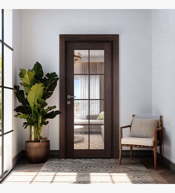 Modern design: eco-friendly materials, straight lines, and glass insert are the hallmarks of the door in a classic style with hi-tech highlights. The minimalistic design of the slab will fit harmoniously into every room. Thanks to the noble shade, Avon 8 Lite will refresh your interior and become an accent piece of your home or apartment.