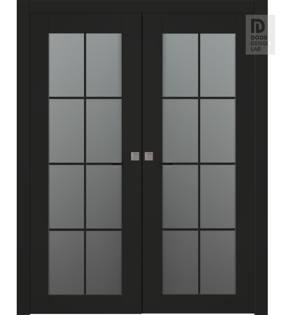 Avon 8 Lite Vetro Black Matte Modern Interior Double Pocket Doors by Belldinni