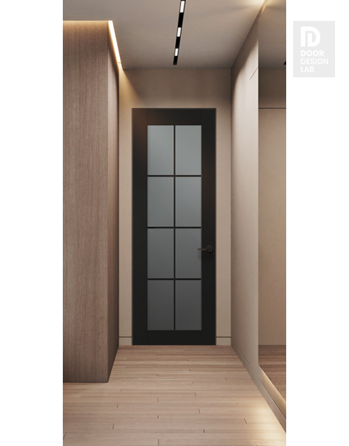 Avon 8 Lite Vetro Black Matte Modern Interior Frameless Door by Belldinni