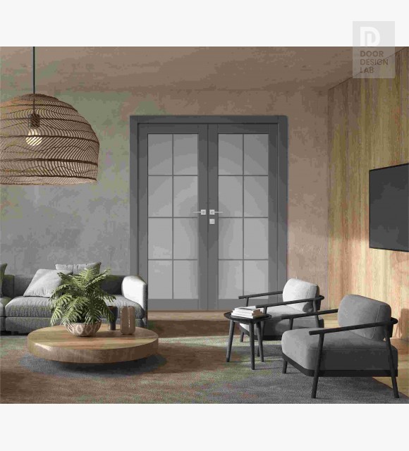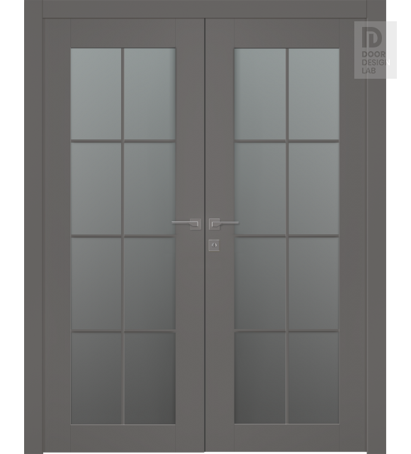 Avon 8 Lite Vetro Gray Matte Modern Interior Double Swing Doors by Belldinni