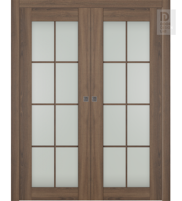 Avon 8 Lite Vetro Pecan Nutwood Modern Interior Double Pocket Doors by Belldinni
