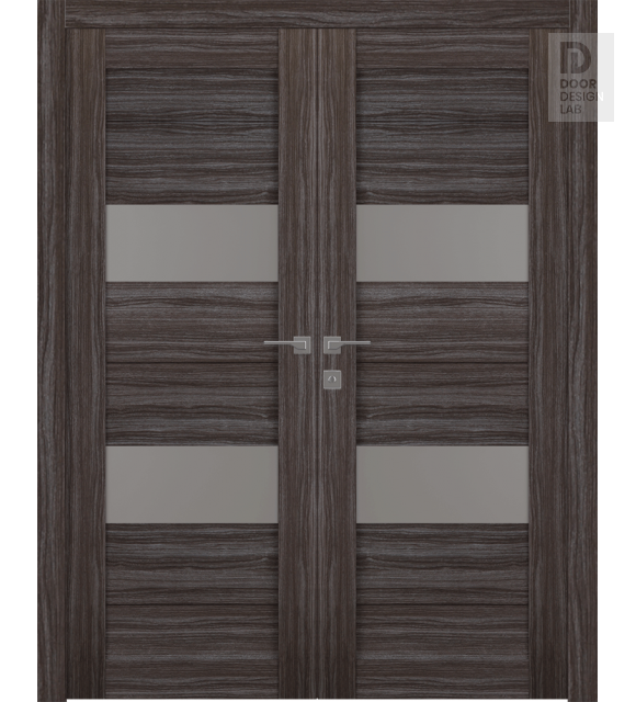 Berta Vetro Gray Oak Modern Interior Double Swing Doors by Belldinni