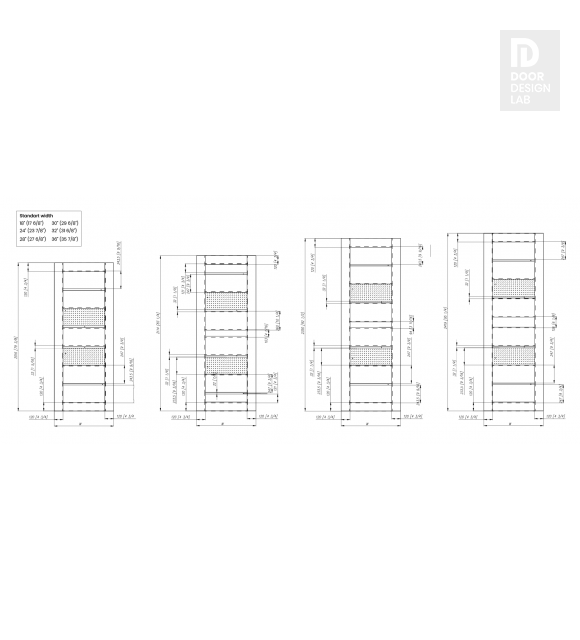 Dessa Vetro provides 4 square panels with 2 lites of 9 1/8" width divided by double lock rail. Panels are made from MDF to provide privacy and reduce sound transmission through your home. Engineered stiles and rails inside the pine frame create strong and sturdy door.