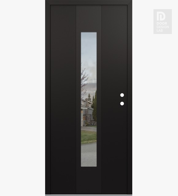 Modern Steel Front Door DIAMOND A1 36" X 80" BLACK/BLACK CLEAR GLASS PANEL BLACK RHI