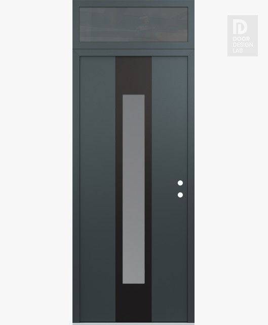 Modern Steel Front Door DIAMOND A1 36" X 96" ANTHRACITE/ANTHRACITE FROSTED GLASS PANEL BLACK RHI WITH TRANSOM MIRRORED GLASS