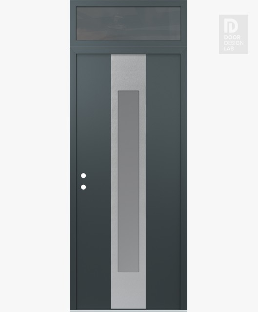 Modern Steel Front Door DIAMOND A1 36" X 96" ANTHRACITE/ANTHRACITE FROSTED GLASS PANEL STAINLESS STEEL LHI WITH TRANSOM MIRRORED GLASS