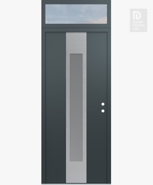 Modern Steel Front Door DIAMOND A1 36" X 96" ANTHRACITE/ANTHRACITE FROSTED GLASS PANEL STAINLESS STEEL RHI WITH TRANSOM CLEAR GLASS