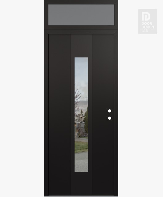 Modern Steel Front Door DIAMOND A1 36" X 96" BLACK/BLACK CLEAR GLASS PANEL BLACK RHI WITH TRANSOM FROSTED GLASS