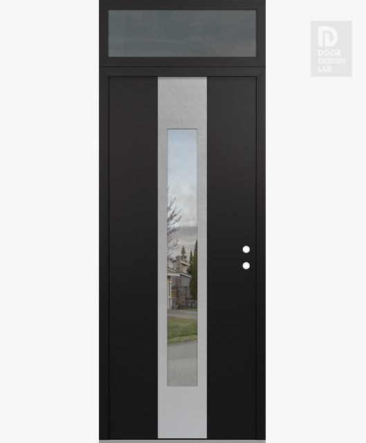Modern Steel Front Door DIAMOND A1 36" X 96" BLACK/BLACK CLEAR GLASS PANEL STAINLESS STEEL RHI WITH TRANSOM MIRRORED GLASS