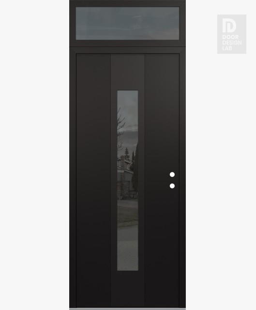 Modern Steel Front Door DIAMOND A1 36" X 96" BLACK/BLACK MIRRORED GLASS PANEL BLACK RHI WITH TRANSOM MIRRORED GLASS