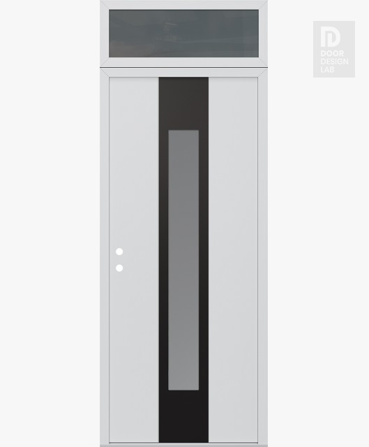 Modern Steel Front Door DIAMOND A1 36" X 96" BLACK/WHITE FROSTED GLASS PANEL BLACK LHI WITH TRANSOM MIRRORED GLASS