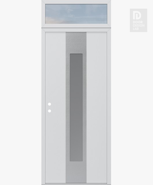 Modern Steel Front Door DIAMOND A1 36" X 96" BLACK/WHITE FROSTED GLASS PANEL STAINLESS STEEL LHI WITH TRANSOM CLEAR GLASS