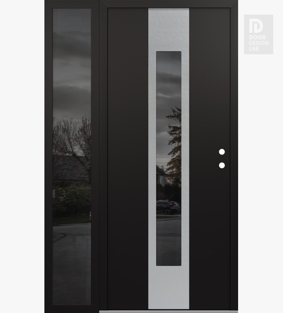 Modern Steel Front Door DIAMOND A1 48" X 80" BLACK/BLACK MIRRORED GLASS PANEL STAINLESS STEEL LHI WITH SIDELITE MIRRORED GLASS