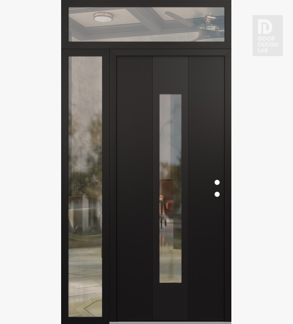 Modern Steel Front Door DIAMOND A1 48" X 96" BLACK/BLACK CLEAR GLASS PANEL BLACK LHI WITH SIDELITE AND TRANSOM CLEAR GLASS