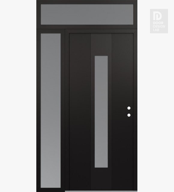 Modern Steel Front Door DIAMOND A1 50" X 96" BLACK/WHITE FROSTED GLASS PANEL BLACK LHI WITH SIDELITE AND TRANSOM FROSTED GLASS
