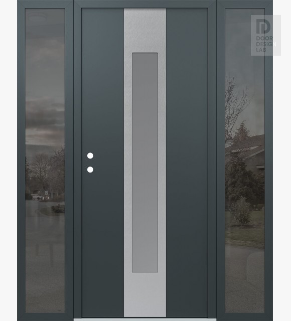 Modern Steel Front Door DIAMOND A1 60" X 80" ANTHRACITE/ANTHRACITE FROSTED GLASS PANEL STAINLESS STEEL LHI WITH 2 SIDELITES MIRRORED GLASS