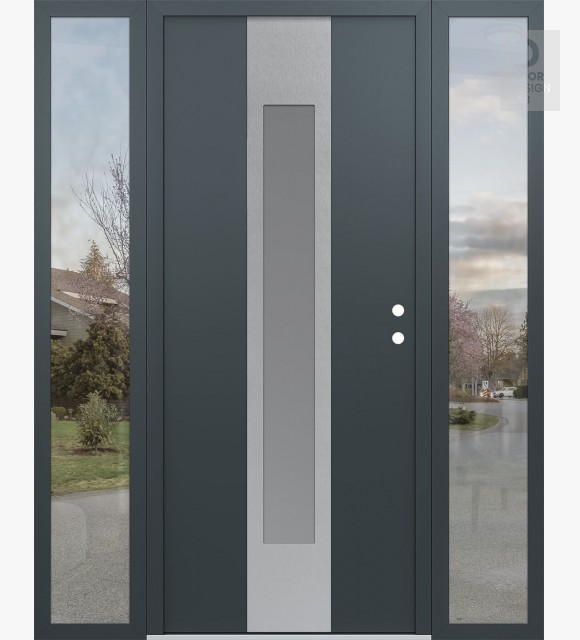 Modern Steel Front Door DIAMOND A1 60" X 80" ANTHRACITE/ANTHRACITE FROSTED GLASS PANEL STAINLESS STEEL RHI WITH 2 SIDELITES CLEAR GLASS