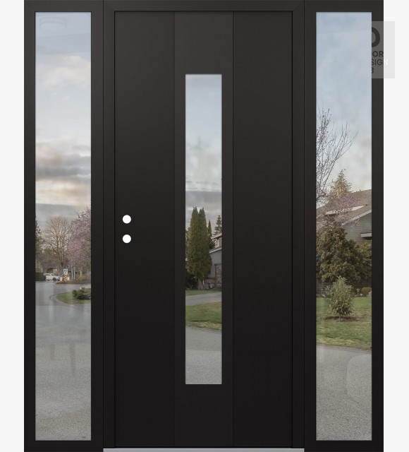 Modern Steel Front Door DIAMOND A1 60" X 80" BLACK/BLACK CLEAR GLASS PANEL BLACK LHI WITH 2 SIDELITES CLEAR GLASS