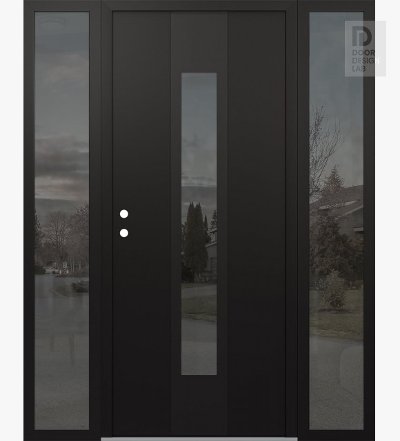 Modern Steel Front Door DIAMOND A1 60" X 80" BLACK/BLACK MIRRORED GLASS PANEL BLACK LHI WITH 2 SIDELITES MIRRORED GLASS