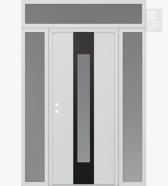 Modern Steel Front Door DIAMOND A1 60" X 96" BLACK/WHITE FROSTED GLASS PANEL BLACK LHI WITH 2 SIDELITES AND TRANSOM FROSTED GLASS
