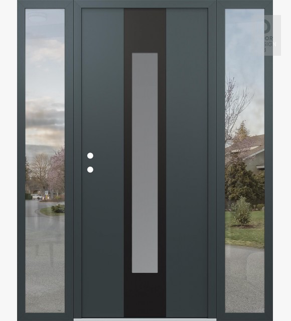 Modern Steel Front Door DIAMOND A1 64" X 80" ANTHRACITE/ANTHRACITE FROSTED GLASS PANEL BLACK LHI WITH 2 SIDELITES CLEAR GLASS