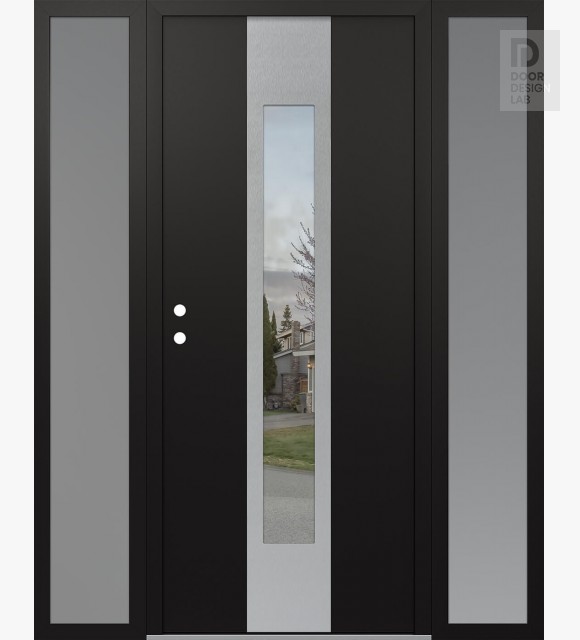 Diamond C9 64" x 80" black/black mirrored Glass Panel stainless steel LHI with 2 Sidelites clear Glass