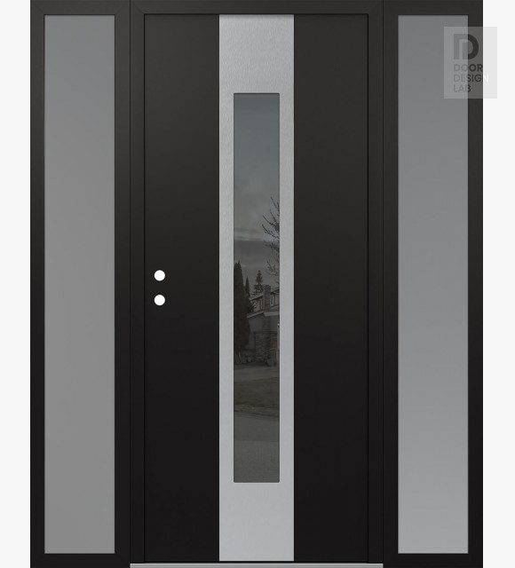 Modern Steel Front Door DIAMOND A1 64" X 80" BLACK/BLACK MIRRORED GLASS PANEL STAINLESS STEEL LHI WITH 2 SIDELITES FROSTED GLASS