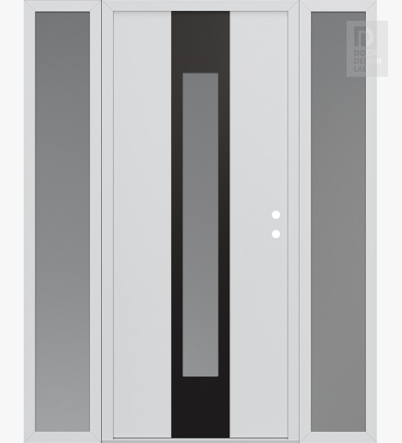 Modern Steel Front Door DIAMOND A1 64" X 80" BLACK/WHITE FROSTED GLASS PANEL BLACK RHI WITH 2 SIDELITES FROSTED GLASS