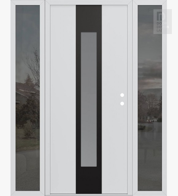 Modern Steel Front Door DIAMOND A1 64" X 80" BLACK/WHITE FROSTED GLASS PANEL BLACK RHI WITH 2 SIDELITES MIRRORED GLASS