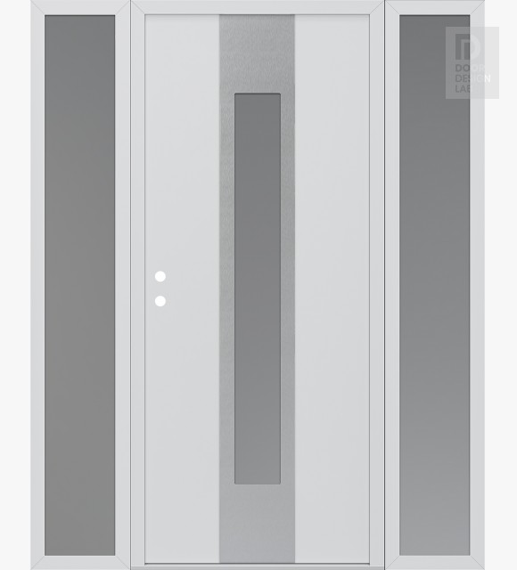 Modern Steel Front Door DIAMOND A1 64" X 80" BLACK/WHITE FROSTED GLASS PANEL STAINLESS STEEL LHI WITH 2 SIDELITES FROSTED GLASS