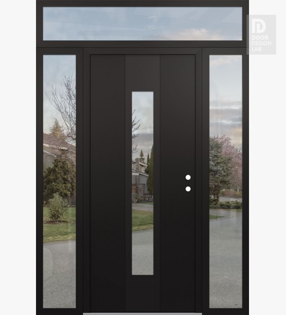 Modern Steel Front Door DIAMOND A1 64" X 96" BLACK/BLACK CLEAR GLASS PANEL BLACK RHI WITH 2 SIDELITES AND TRANSOM CLEAR GLASS