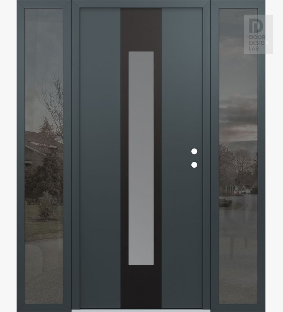 Modern Steel Front Door DIAMOND A1 68" X 80" ANTHRACITE/ANTHRACITE FROSTED GLASS PANEL BLACK RHI WITH 2 SIDELITES MIRRORED GLASS