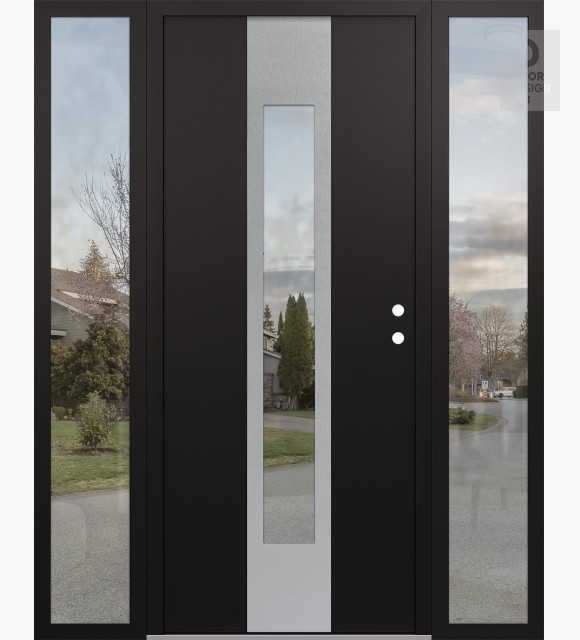 Modern Steel Front Door DIAMOND A1 68" X 80" BLACK/BLACK CLEAR GLASS PANEL STAINLESS STEEL RHI WITH 2 SIDELITES CLEAR GLASS